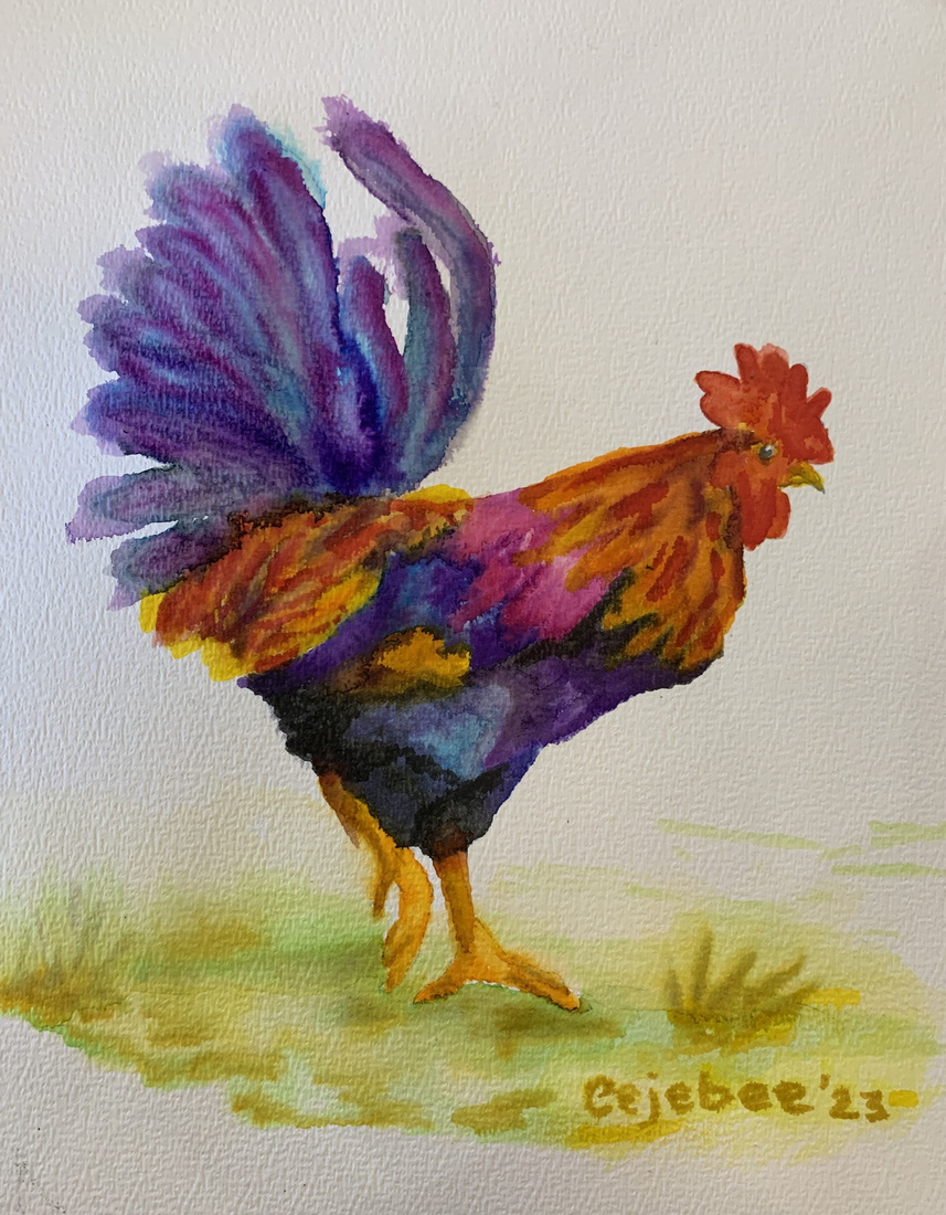 Haan in zijn geheel met ecoline-stiften