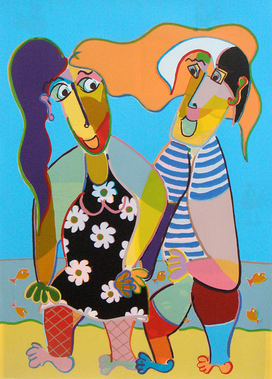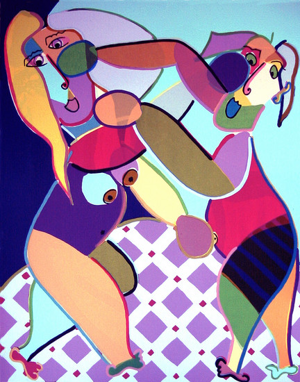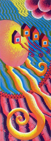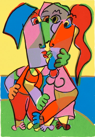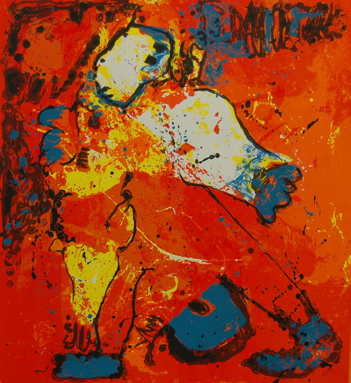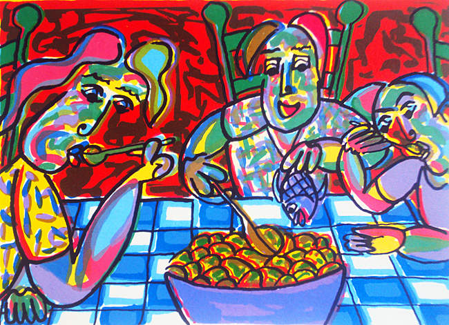 'Raster - rood-blauw 2.' - kleurige geometrische abstracte kunst in zeefdruk