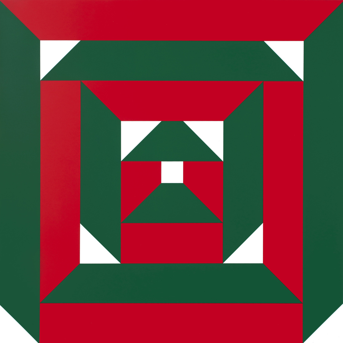 'Raster - groen-rood 4.' - kleurige geometrisch-abstracte kunst, in zeefdruk