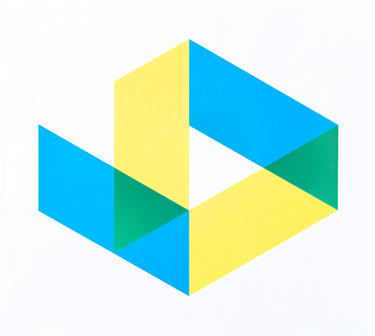 'Haak - geel-blauw' - geometrisch-abstracte print, zeefdruk