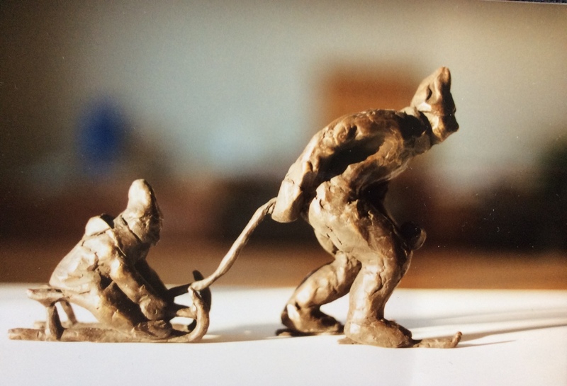 Schaatser en slee met kind