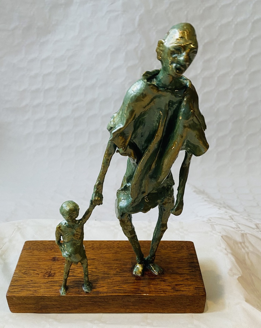 Keramiek beeldje van donkere relaxte slanke dame opzij leunend (rechts)