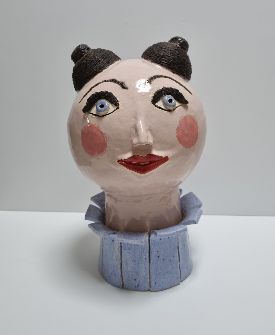 Aiyanar paard, oranje albast op sokkeltje van springstone. Jan. 2026