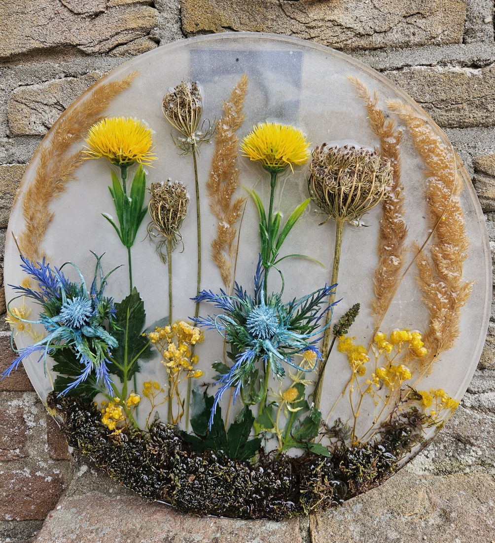 Kreukelvaasje met driftwood flower luchtdrogende klei.K33 — €80,00