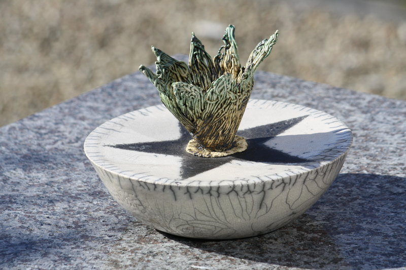 Kreukelvaasje met driftwood flower luchtdrogende klei.K20