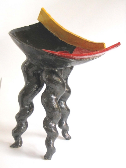 Kreukelvaasje met driftwood flower luchtdrogende klei.K14 — €70,00