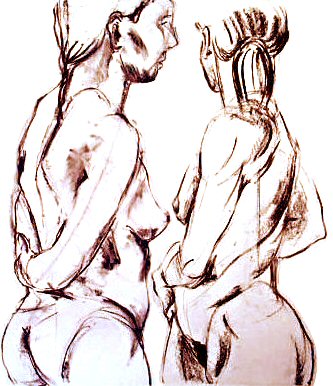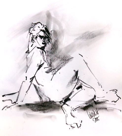 Zittende vrouw abstract naakt in houtskool