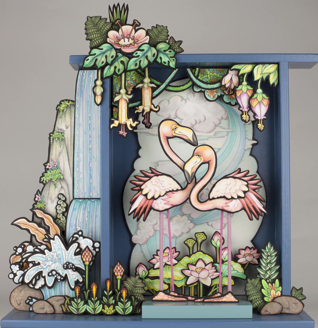 3D kijkkastje met portret met bloemen