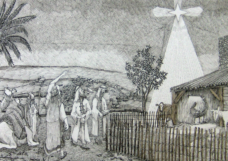 Jacobsladder, naar de ets uit 1655 - een schets naar Rembrandt door Paul Werner