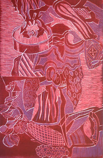Grijze rotsen in Bretagne, Frankrijk - kleuren-litho op papier, Paul Werner