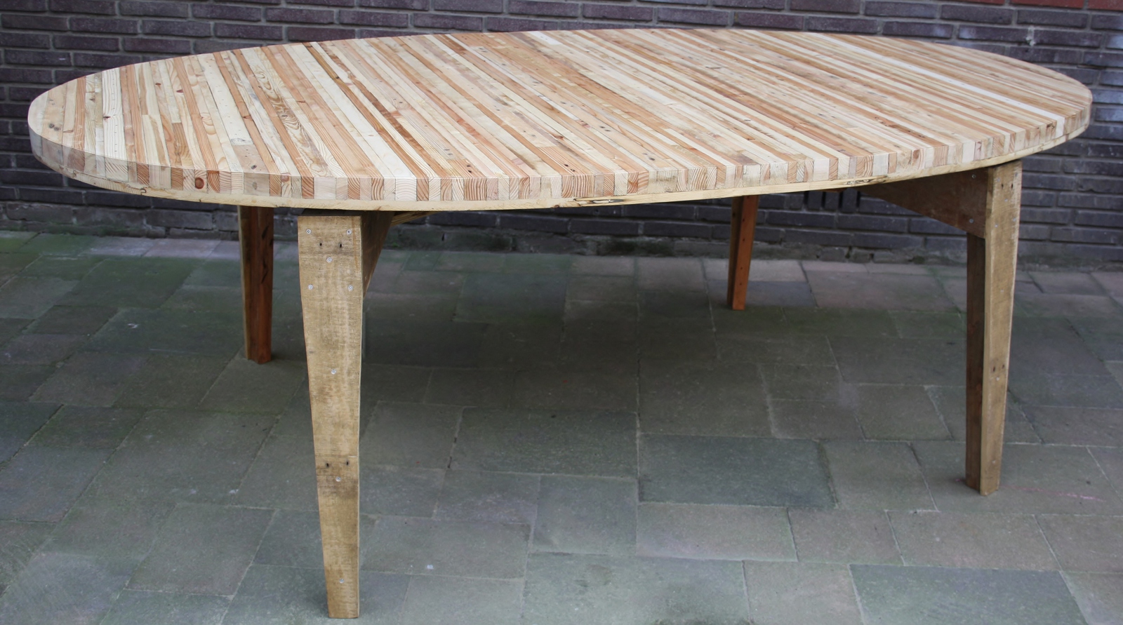 Ovalen tafel van hergebruikt hout