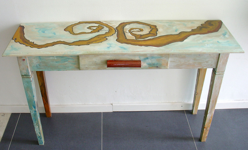 Beschilderde antieke kast met spiegel
