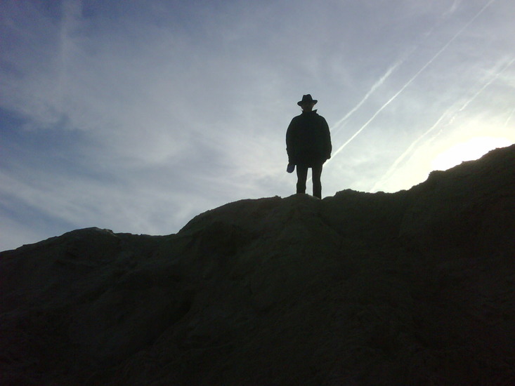man op de top van de duinen