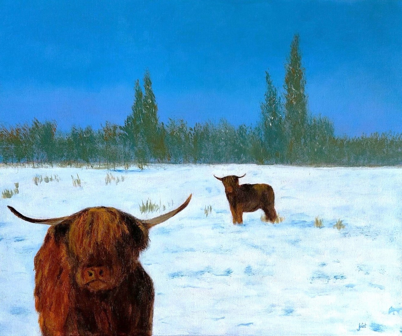 Schotse Hooglanders in sneeuwlandschap