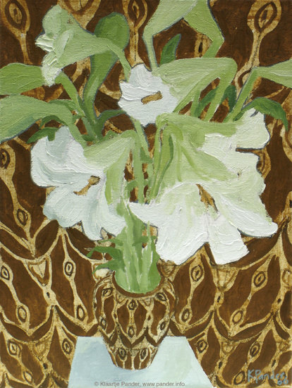 Witte lelies, oker behang