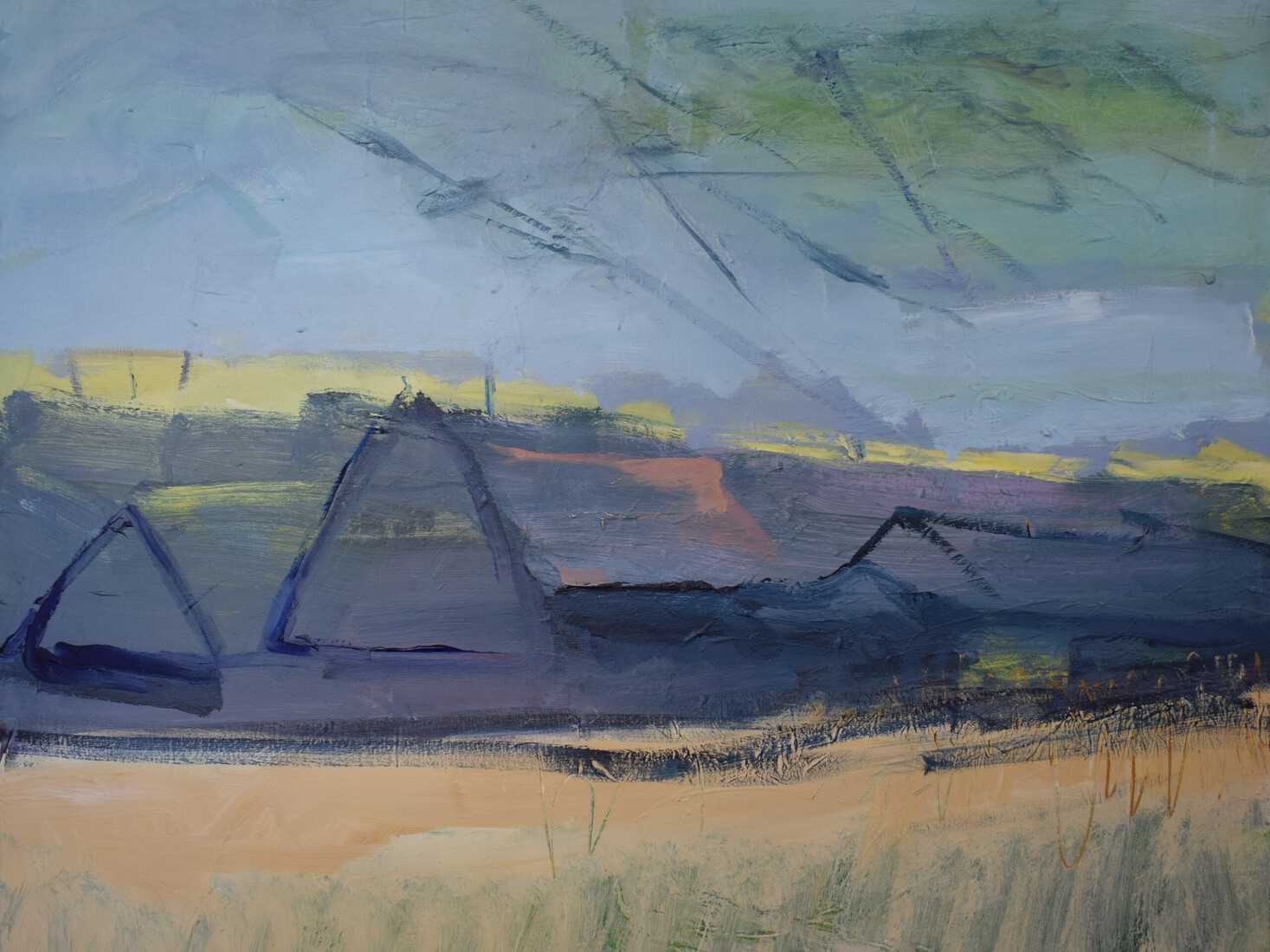 'Groot abstract landschap onder grote zon' - abstract schilderij; gratis kunst en nog beschikbaar; Fons Heijnsbroek