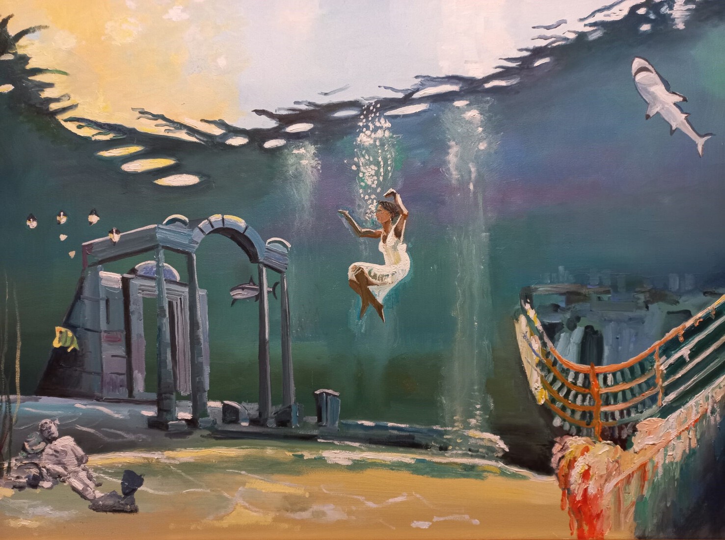 What lies beneath Painting Titanic Atlantis surrealism Peter Boonstra art painter kunstenaar Almere