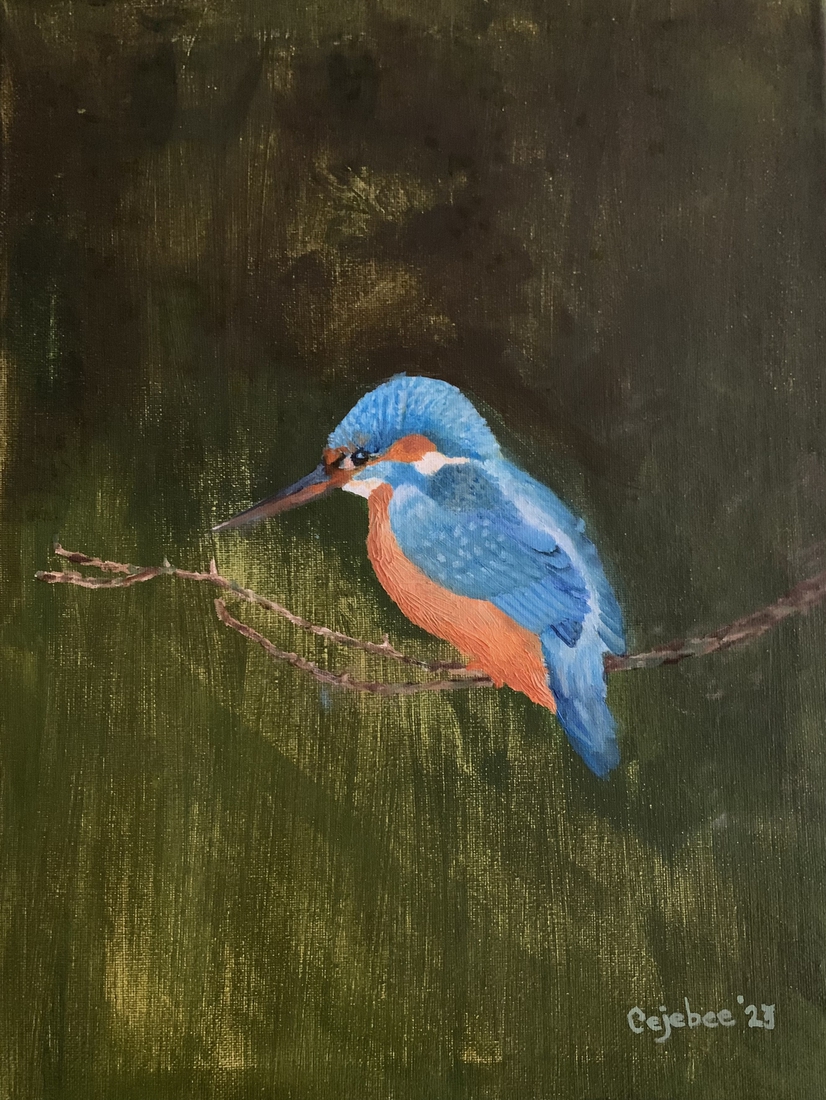 Acrylverf op papier. "Een vink op het water"