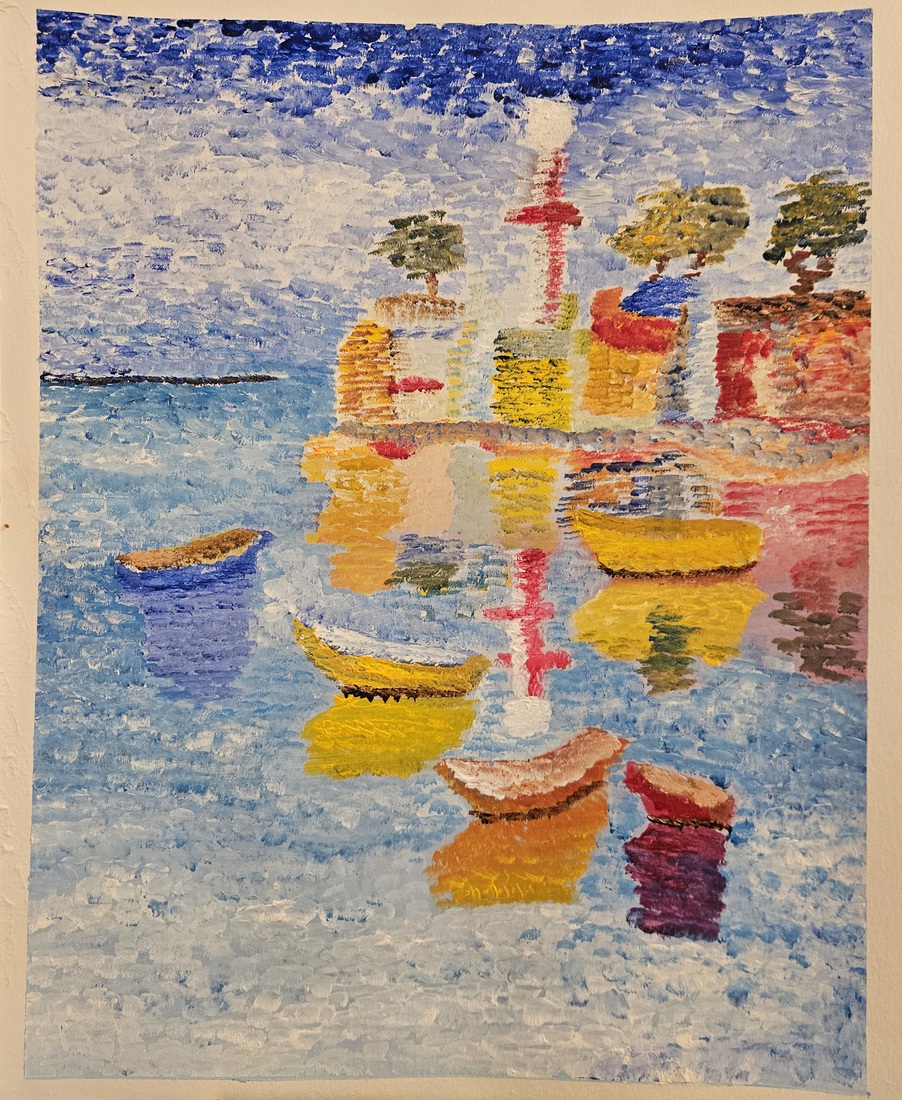 Boten op de zee met uitzicht op een dorp