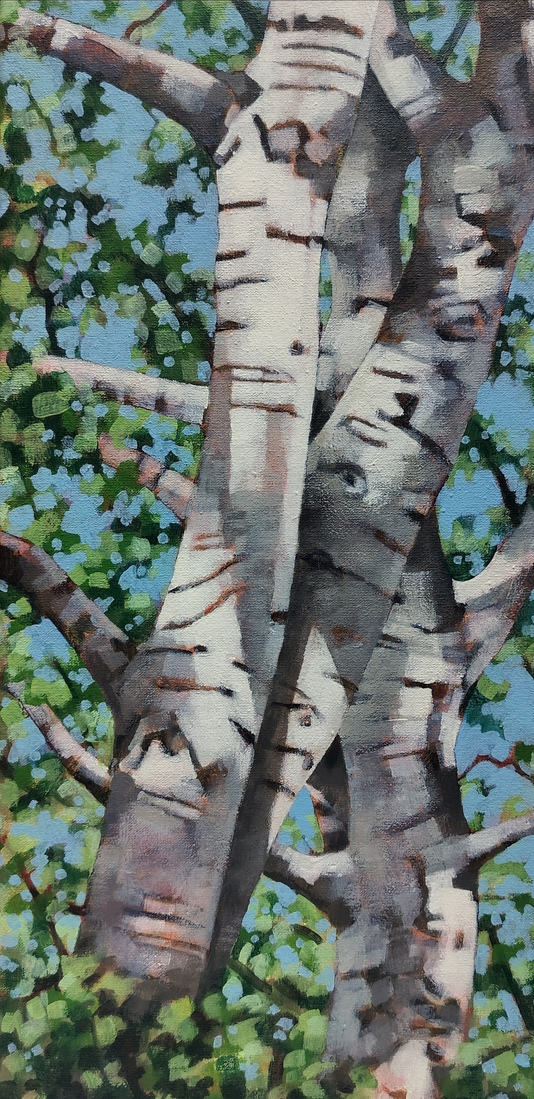 Witte abelen in het zonlicht