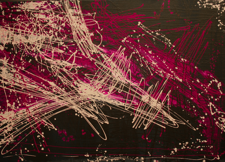 'Royal Garden' - een modern, abstract en groot schilderij van Benfo; samen geschilderd door Ben Vollers & Fons Heijnsbroek; te koop — €2500,00