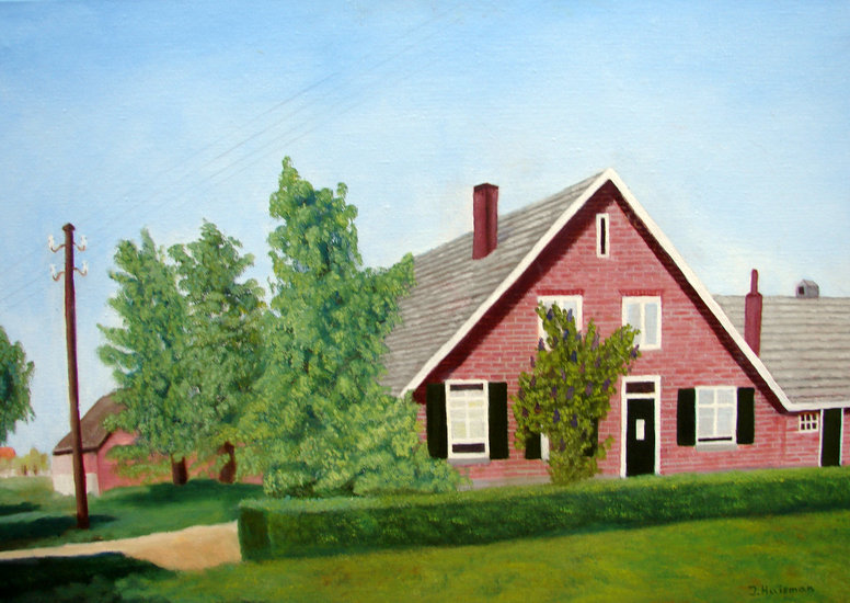Schilderij van ouderlijke boerderij van mevr. Truus Kanters