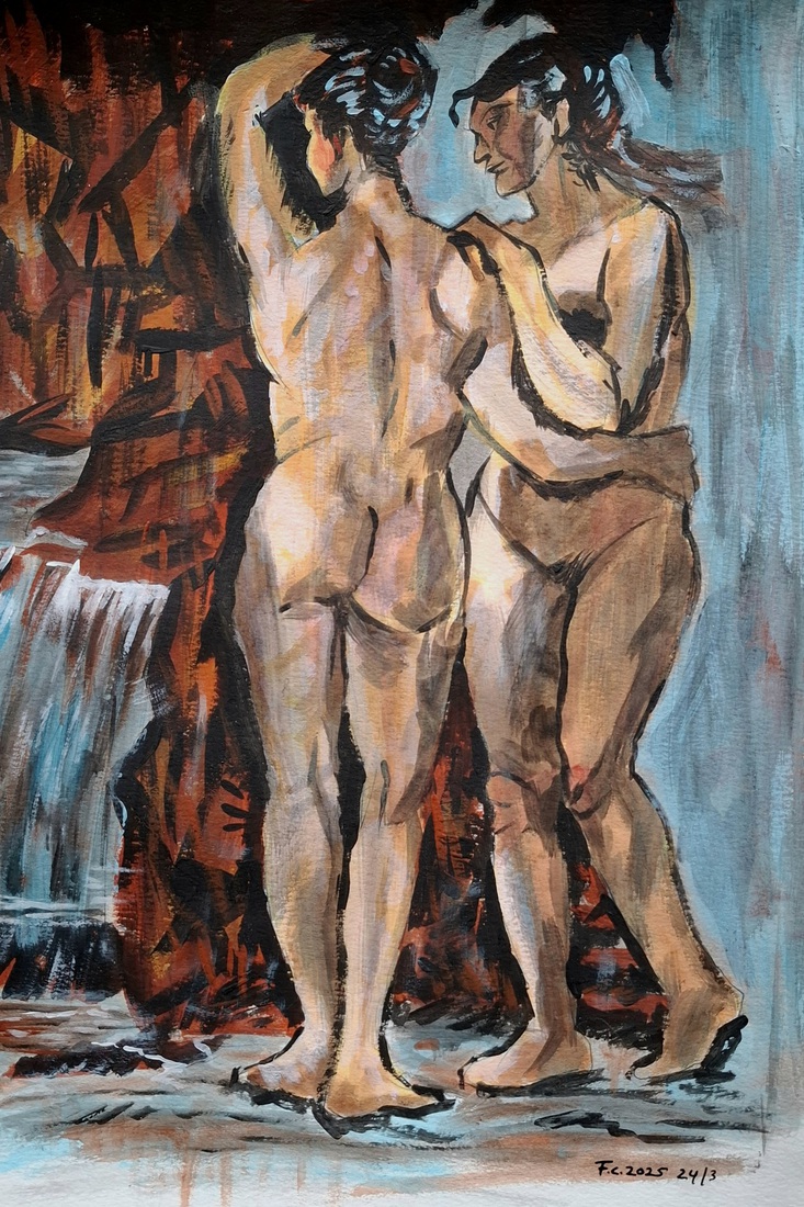 Bathers by a Waterfall