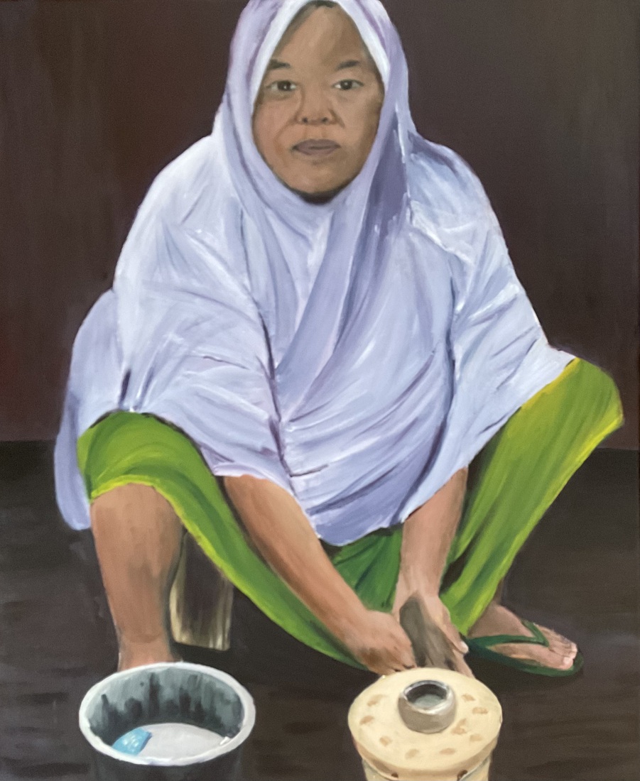 Pottenbakster met lila hijab