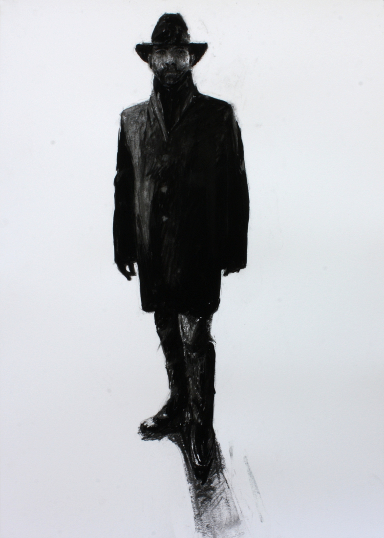 Maarten, mannelijk naakt, gemengde techniek op kraftpapier.