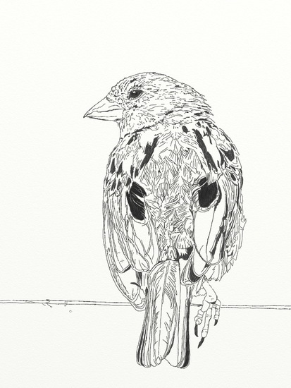 Uil op tak inkt tekening