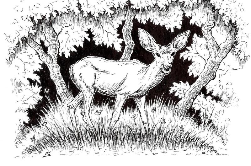 Hertje in het bos inkt tekening
