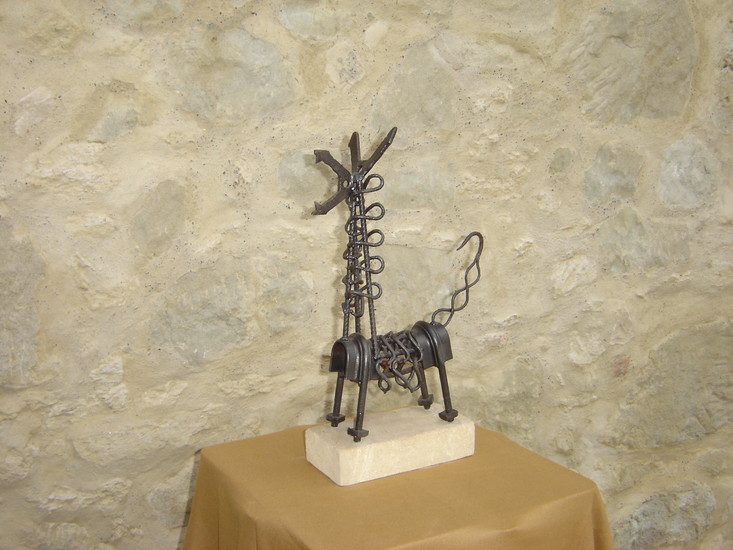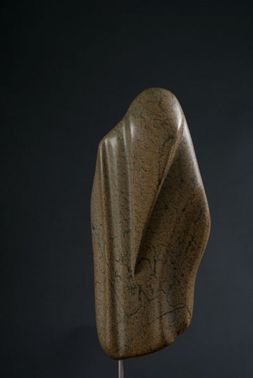 Wit keramiek hoofdje op zwarte sokkel en staafje.