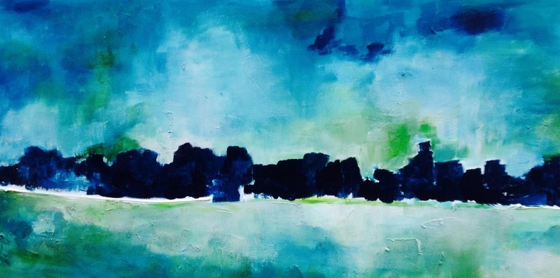 Dageraad, acrylverfschilderij van zeegezicht