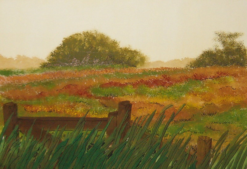 Kerkje van Kermaria en Isquit in Bretagne, Frankrijk - gouache, schilderij op papier, Paul Werner