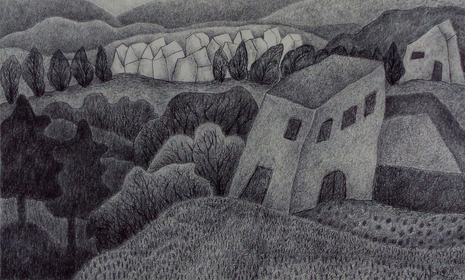 Huisjes in een landschap