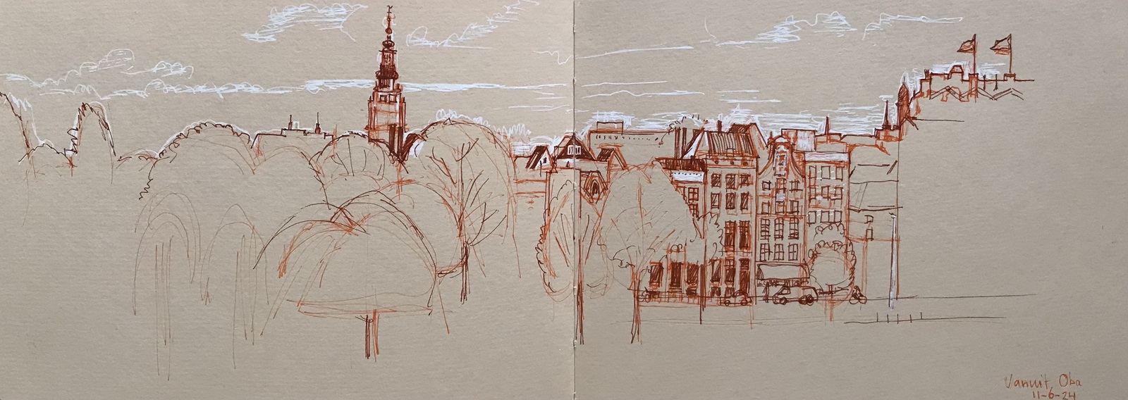 MARQUA117 Sint Jan Kathedraal, bomen en terrassen aan de Parade 's-Hertogenbosch
