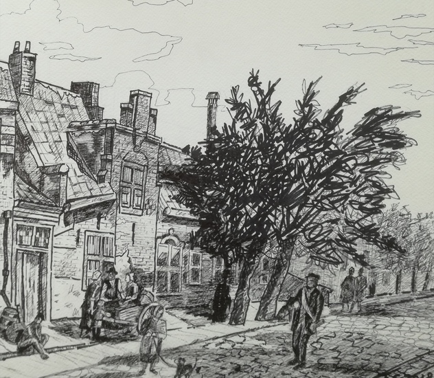 Carnaval in de Kerkstraat MARQUA165, incl. lijst