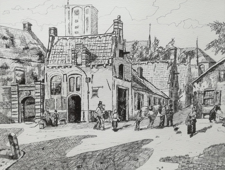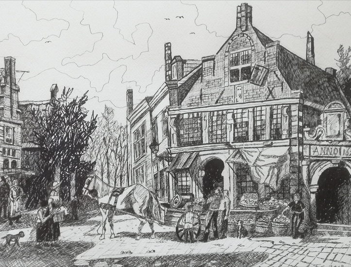Skyline markt, stadhuis, VVV, etc. MARQUA170 incl. lijst