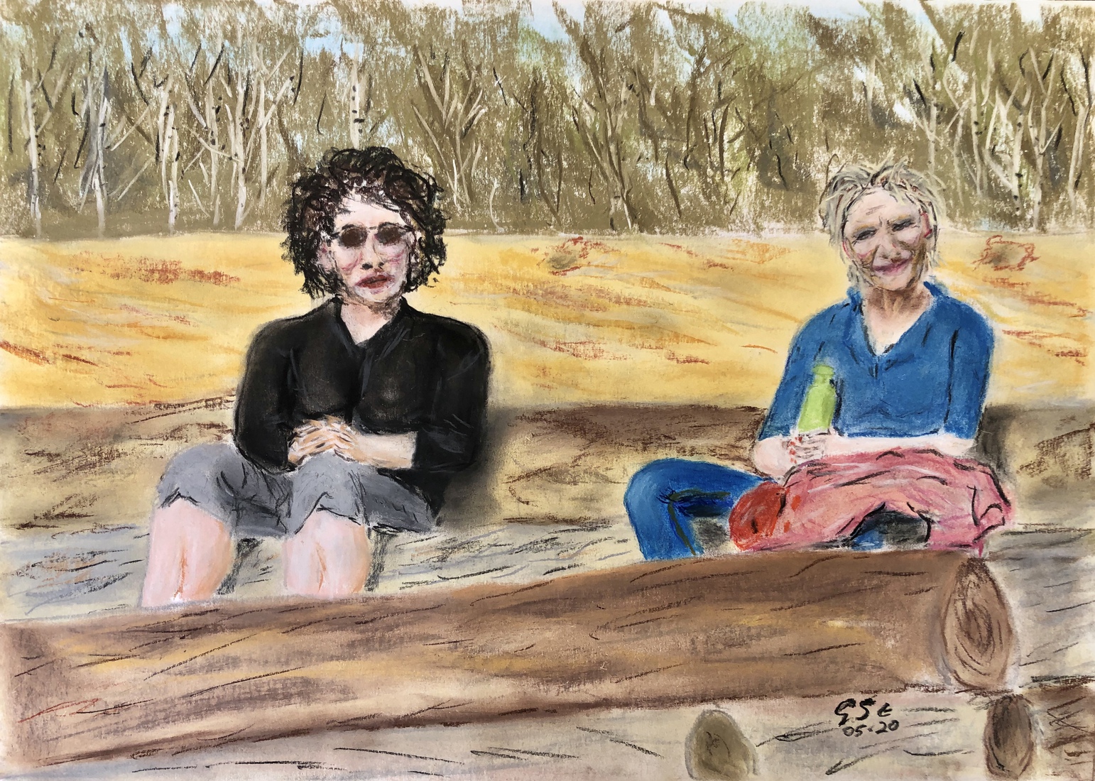 Mensen - Uitrusten op boomstammen Oud Herlaar - 2020-05