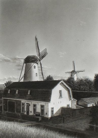 De molens bij Wemeldinge - Houtskool