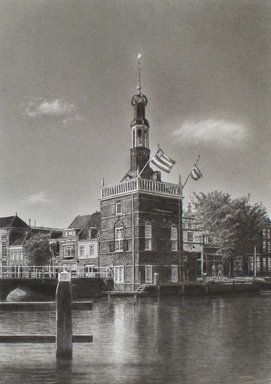 Het havengebouw in Alkmaar - Houtskool
