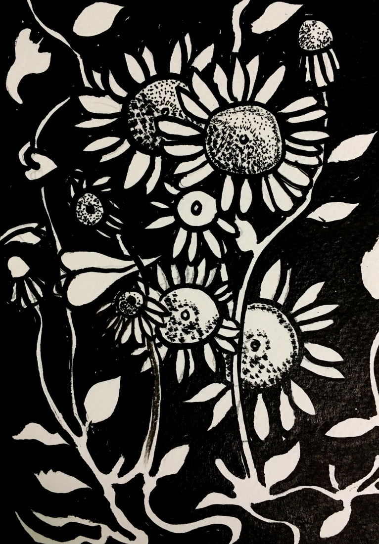 bloemenfantasie in zwart wit
