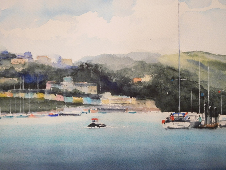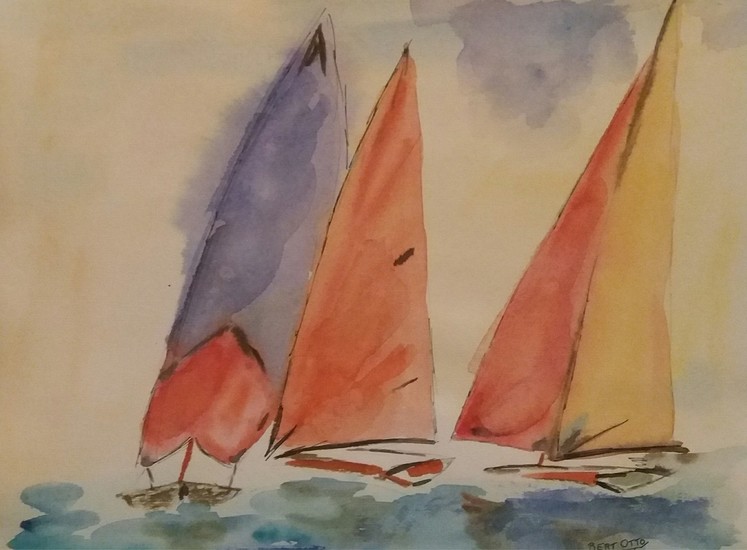 Zeilwedstrijd, aquarel van landschap