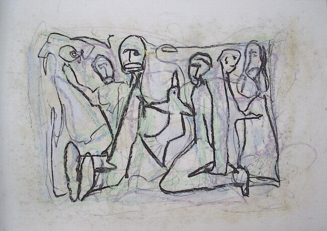 • Lot verlaat Sodom op bevel van de engel - een schets naar Rembrandt door Paul Werner