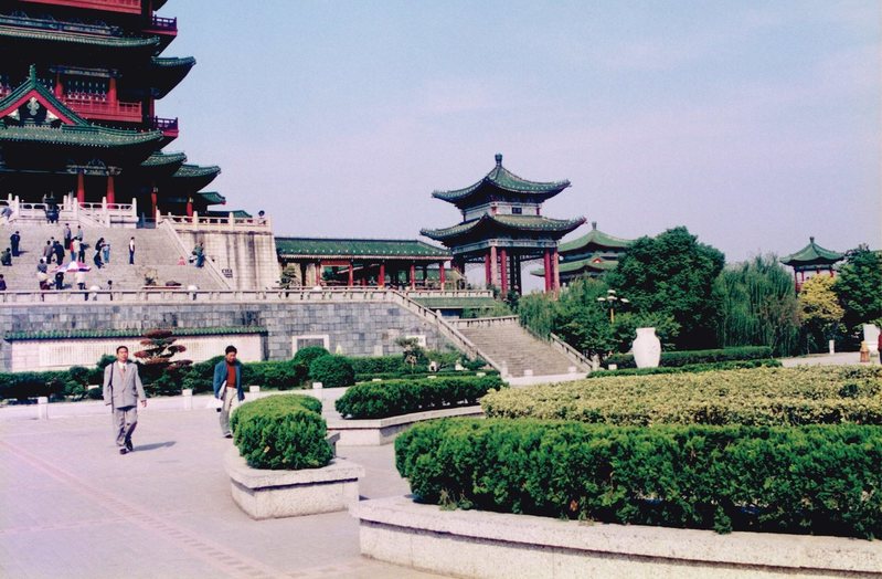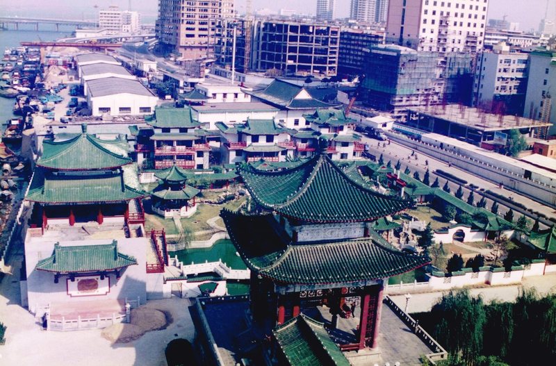 Bloembakken en gebouwen in China