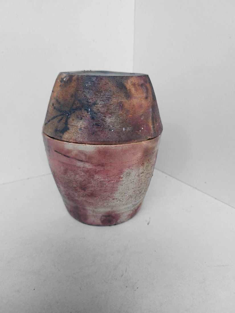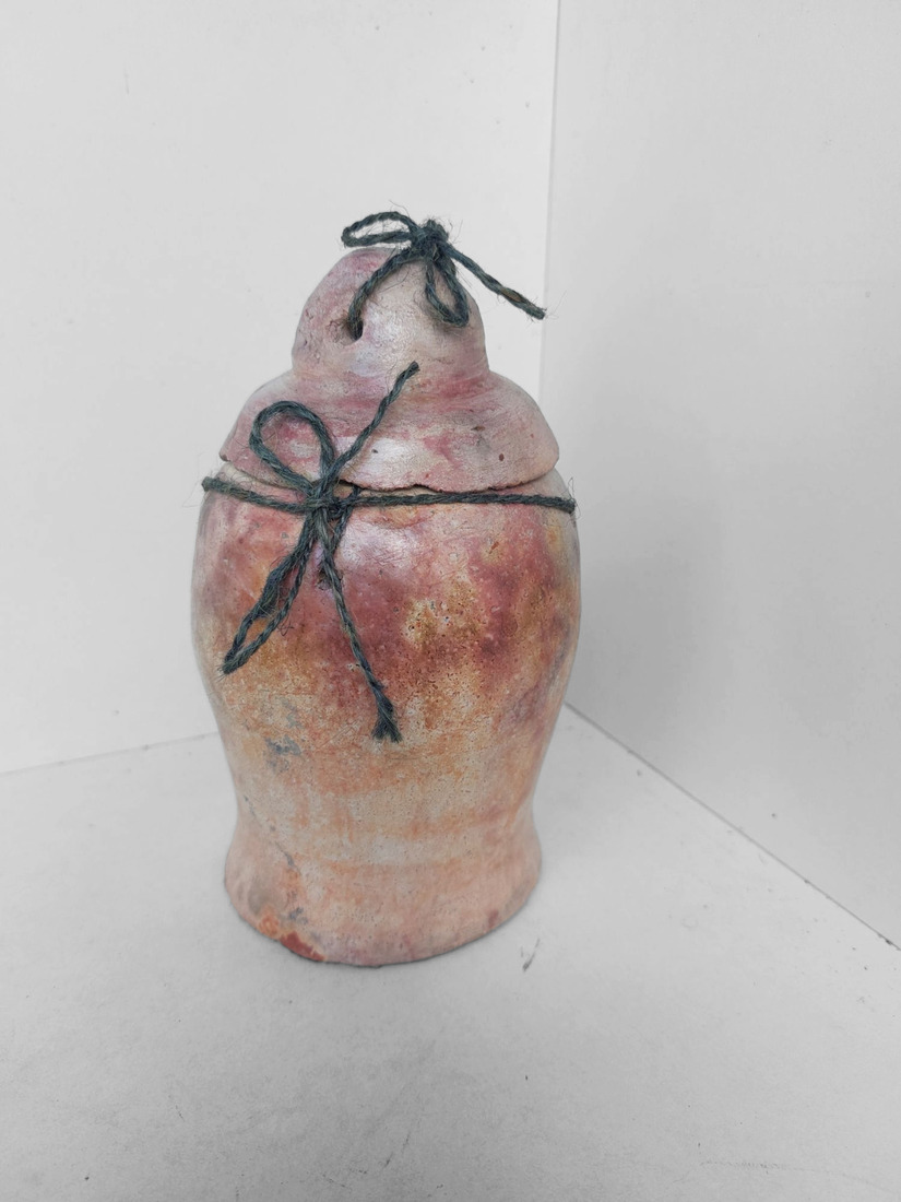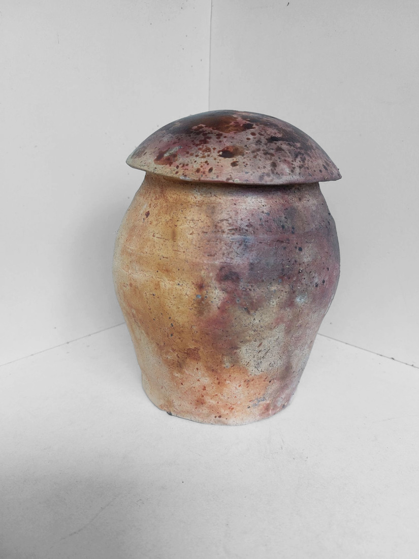 Gedraaide pitfire pot met ribbeltjes deksel — €45,00