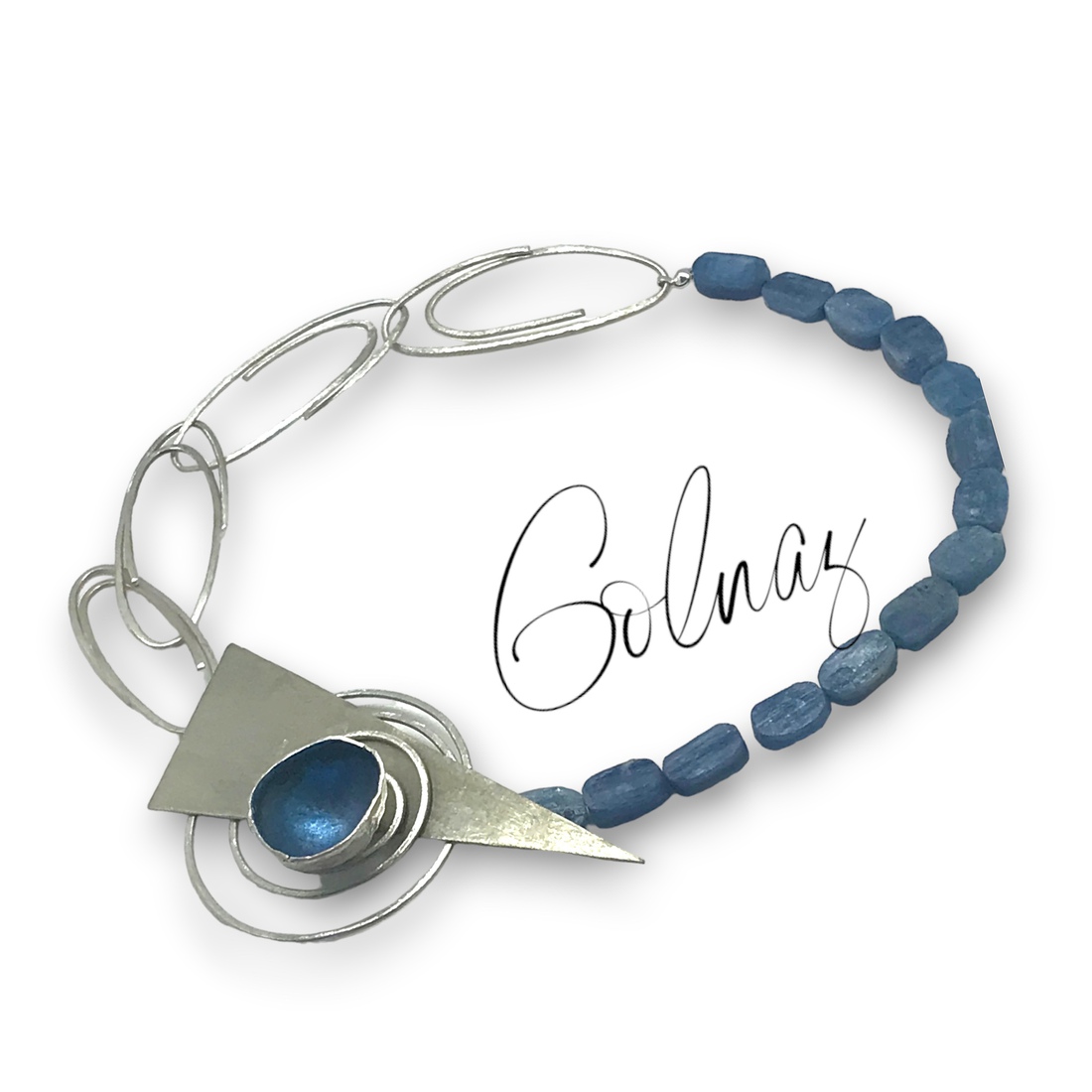 Pan van steengoed in blauw/ bruin en wit (steengoed) — €160,00