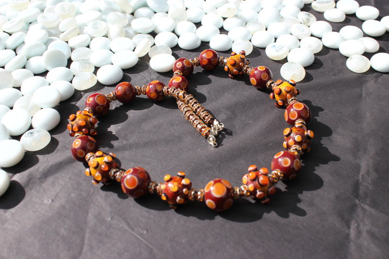 Rubberen ketting met groene handgevilte cirkels