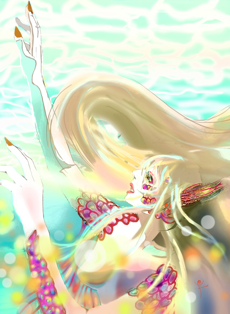 strange, looming head, biomorphic painting of a woman with large eyes