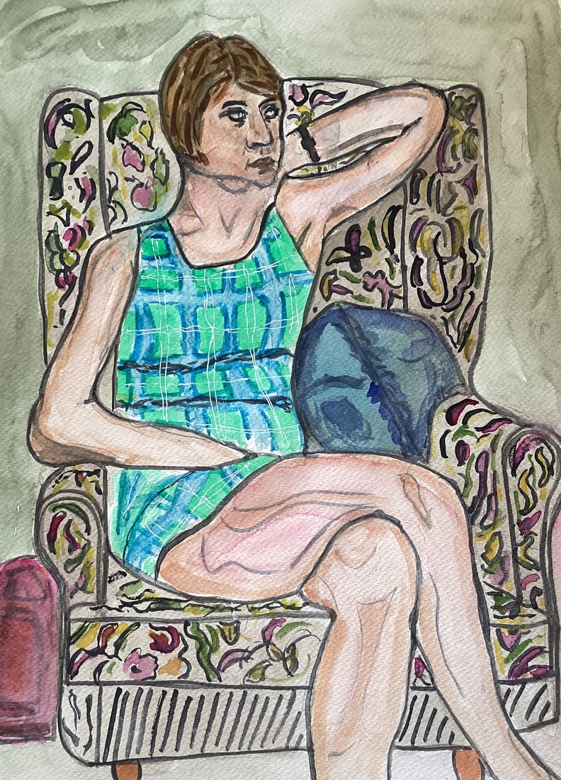 Zittende vrouw met tulpen